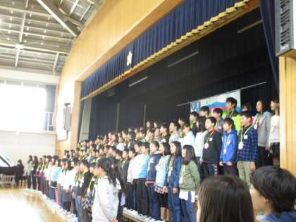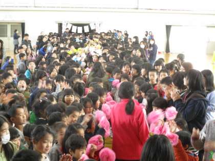 6年生からお礼の言葉と歌,そして各クラスにプレゼントがありました。