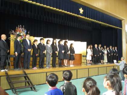 着任式では,新しく来られた20名の教職員を紹介しました。