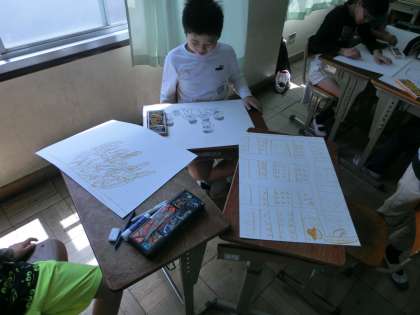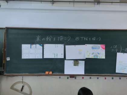 稲穂がゆれている様子や,お米を食べている様子など,自分たちで考えながら楽しそうに描いていました。