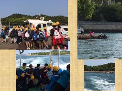 大久野島を離れました。職員の方がお見送りに海に飛び込んでくださりました。サヨウナラ 大久野島。