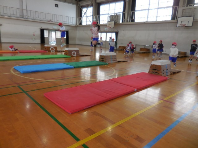 体育の時間に、とびばこあそびがはじまりました。1年生より、できる技が増えて、みんな喜んでいます。