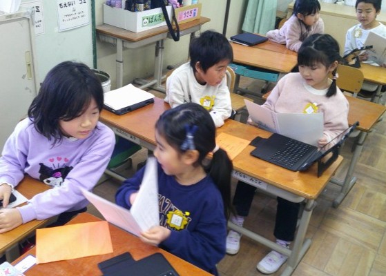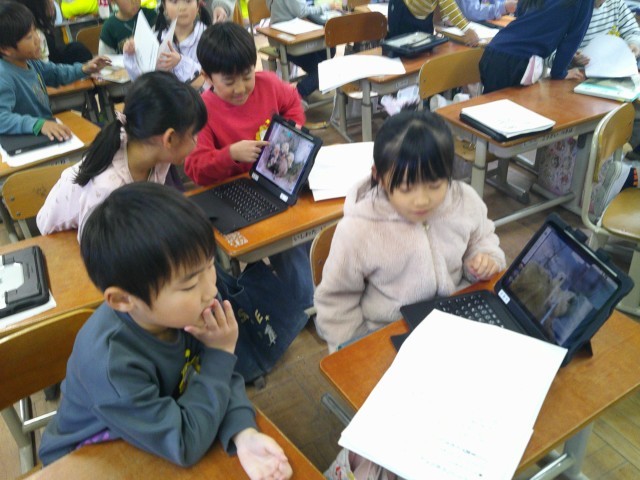 調べたことをタブレットの写真を見せながら、友だちに紹介しました。