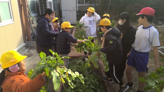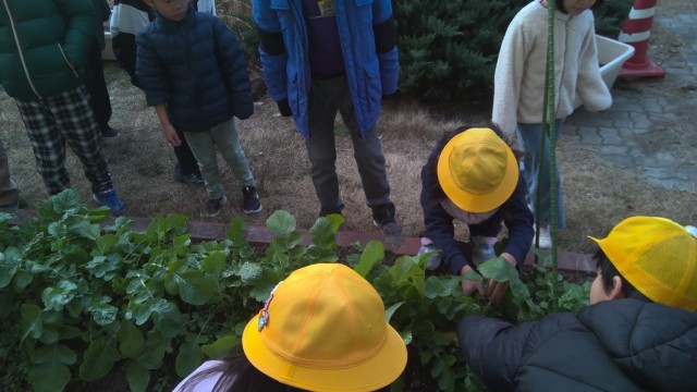 自分で抜いた大根を大事に包み、お家にもって帰りました。