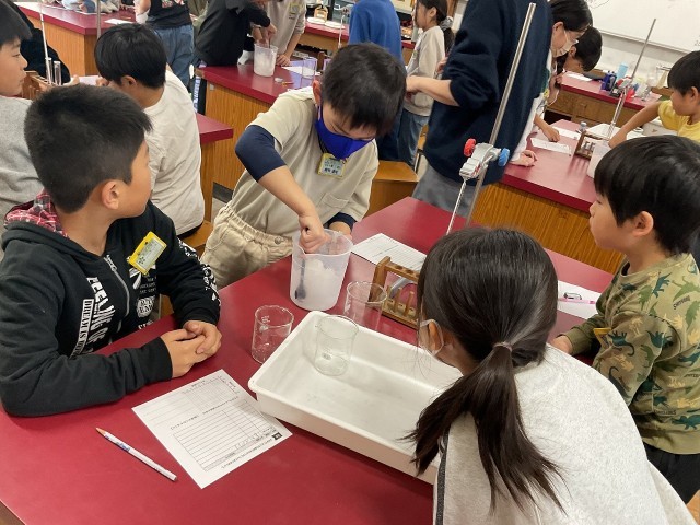 実験から発見したことを友だちと伝え合う姿が見られました。