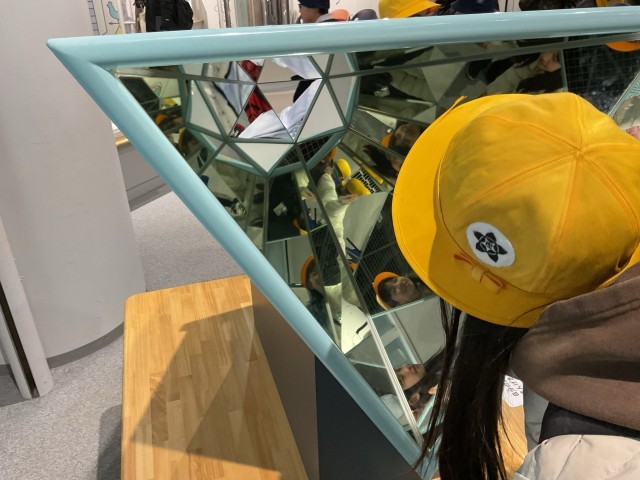 万華鏡のような鏡や足が伸びて見える鏡があり、興味津々でした。
