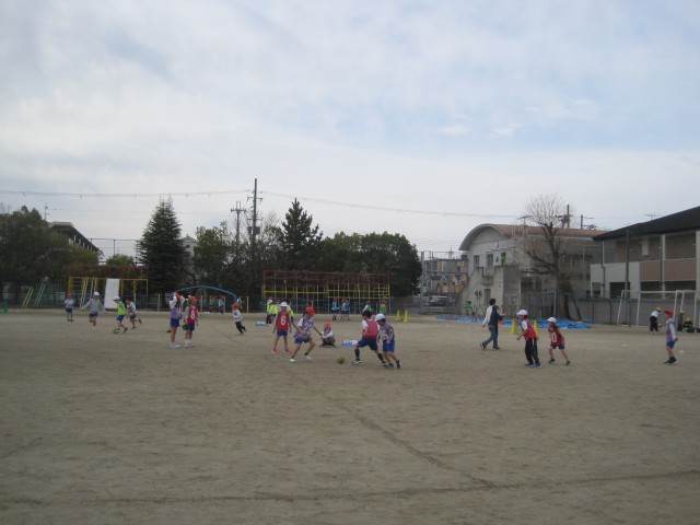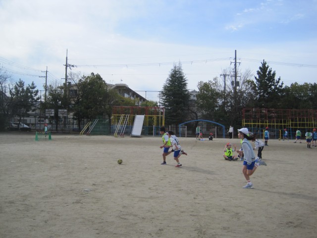 体育の学習で「サッカー」をしています。ゴールが決まるとチームみんなで喜んだり、うまくいかなかった時は「次がんばろう!」と励ましあったりする姿が見られて素敵です。仲間と協力してプレーすることの大切さを感じているようです。