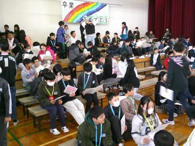「おめでとう」「ありがとう」が交錯する、笑いあり涙ありのすてきな「6年生を送る会」になりました。