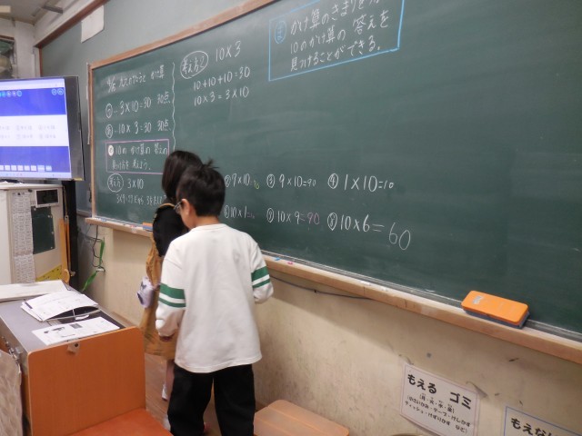 算数は、「九九の表とかけ算」を学習しています。ノートを見せ合ったり、発表したり、3年生も、自分の考えを友だちと交流することを大切にしていきたいと思います。