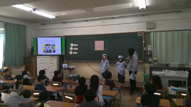 昨日より給食が始まりました。献立を見て、「今日は食べられそうだな・・・。」「豆は少し減らそう。」など子どもたち自身で分量も考えながら、食べている様子が見られます。給食が始まる前に、栄養教諭の先生と「おいしい きゅうしょく」の学習をしました。準備や片付けの仕方、エプロンの着方、たたみ方など教えてもらい、「今日から一生懸命がんばろう!」とやる気に満ち溢れている子どもたちでした。