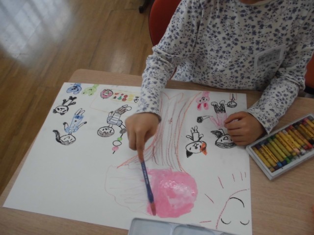 図画工作の時間に「はる」をテーマに絵を描きました。