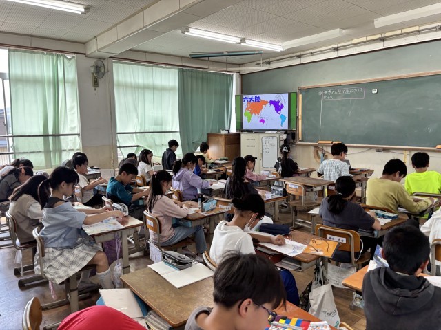 社会科「世界の中の国土」の学習をしています。主な大陸と海について学習しましたが、覚えることが多い…!ですので、少しずつで構いません。知っている国や興味をもてたところからでも構いません。まずは自分なりに興味をもってほしいと思います。