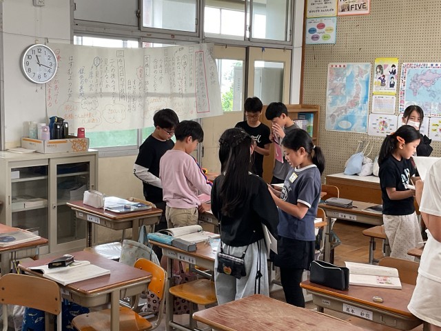 国語科「銀色の裏地」の学習の様子です。友達と印象に残ったことを伝え合うことで、自分だけでは思いつかなかった、考えつかなかったような意見に出合い、視野が広がったようです。