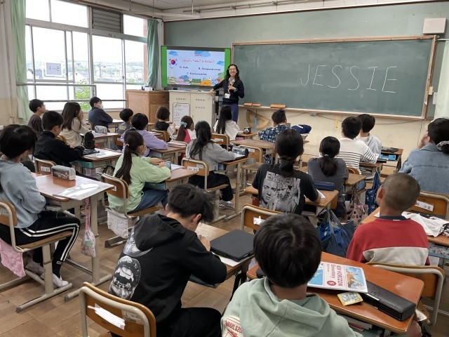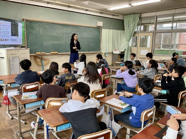 5年生になり、外国語の授業が本格的に始まりました。写真はALTの先生との授業の様子です。本物の英語に触れながら、少しずつコミュニケーションを楽しんでいってほしいと思います。