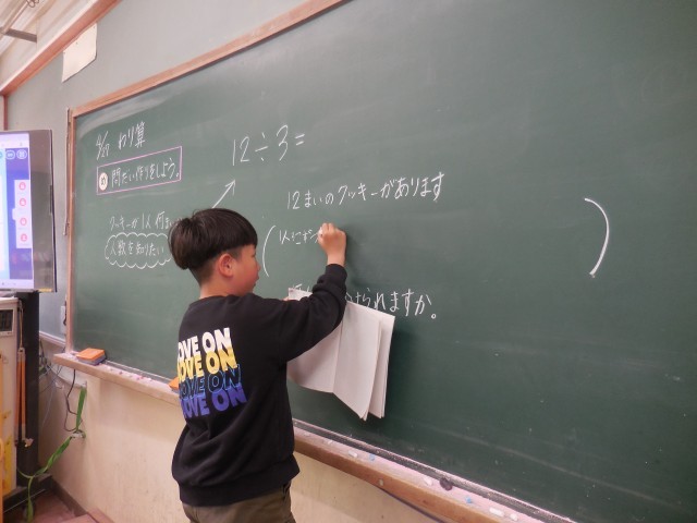 算数の時間にもタブレットを使い始めました。めあてを確認したり、自分の考えた問題文を提出したりしました。3年生もたくさん使っていきましょうね。