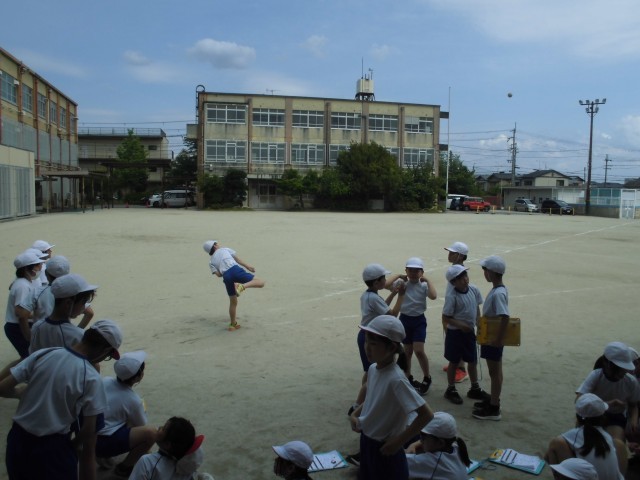 体育の時間には新体力テストを行いました。今日は、ソフトボール投げとシャトルランニングをしました。自分の持っている力を発揮して、記録に挑戦していました。