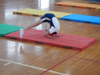 体育のマット運動の学習をがんばっています。