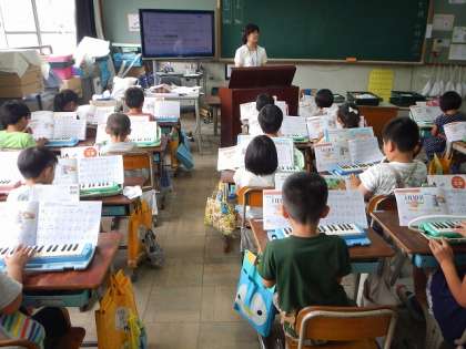 指使いにも気をつけながら,元気いっぱい演奏していました。