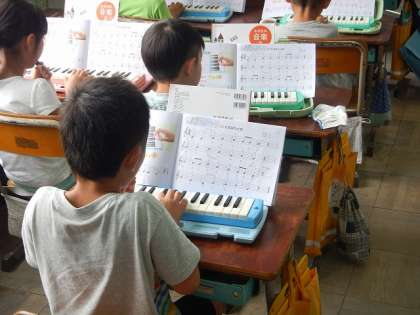 けんばんハーモニカを使って,たなばたさまの曲を練習しました。