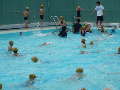 少し天気は悪かったですが,いろいろな泳ぎ方で,何度も練習をしました。
