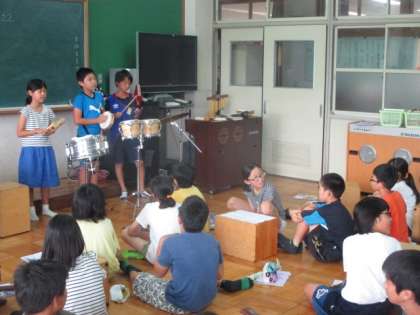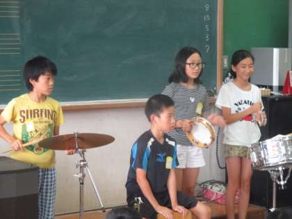音楽ではグループごとに作ったアンサンブルの発表をしました。グループで掛け合いや繰り返しなどを工夫したことで、個性豊かな演奏が響いていました。