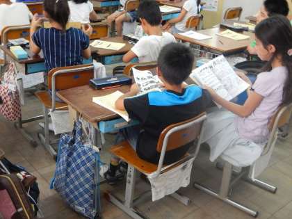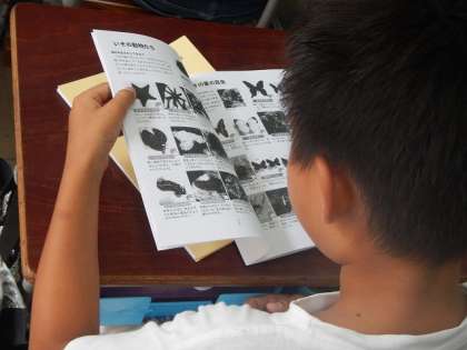 自分たちで作ったしおりをとてもうれしそうに眺めていました。