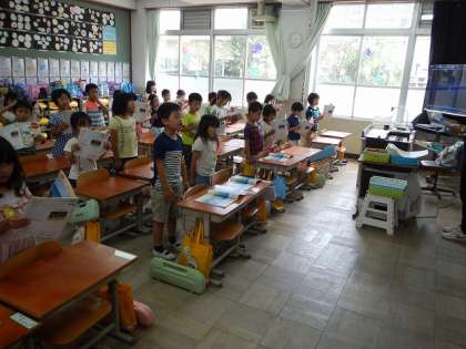 歌う姿勢,口の開け方も意識しながら,「うみ」の歌を練習しました。