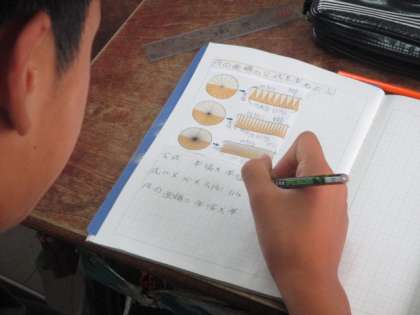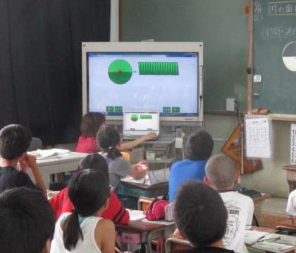 算数の学習で円の面積を考えました。図を使いながら,これまでに学習した面積の求め方を活用して考えました。円を等分して並べることで,長方形に近似できることから,円の面積の公式を導くことができました。アニメーションを見てみると長方形に近づいていく様子がよくわかりました。
