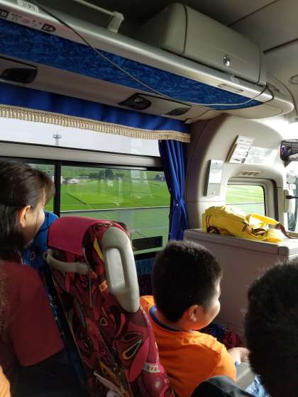 みんなでバスに乗り,三重県まで向かいます。