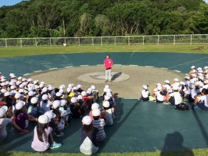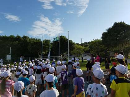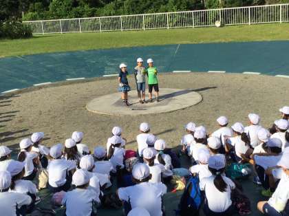 桂小学校と一緒に朝の集いをしました。