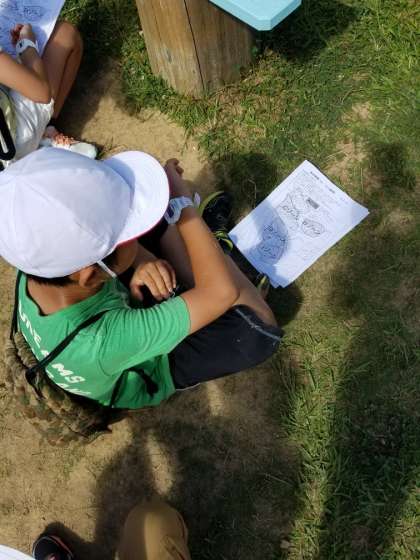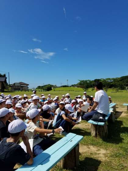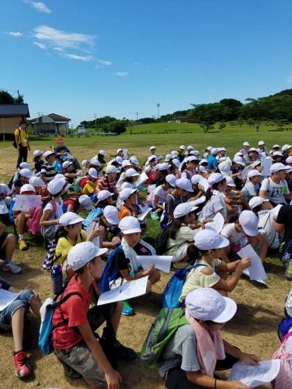 芝生広場に集合して、所内オリエンテーリングの説明を聞きました。