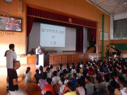 校長先生から,夏休み前にお話が合った3つの「あ」について,そして夏休み中に変わったこと,夏休み明けから変わることについてのお話を聞きました。