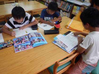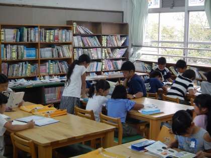 総合的な学習の時間で,「だれもが関わり合えるように」これまで行われてきた工夫や生み出されてきたものなど,自分でテーマを決めて学習を進めています。今回は図書室で調べ学習をしました。