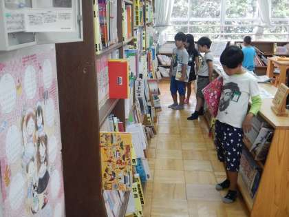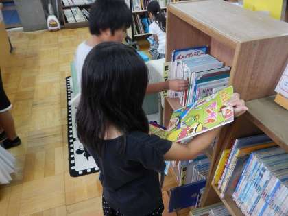 たくさんの本の中から読みたい本を探しました。どの本も読んでみたいけれど,たくさんの本があるし,借りられる冊数も決まっているので,とても悩みます。いっぱい考えて,読みたい本を借りると,すぐにページを開いて読みたくなります。