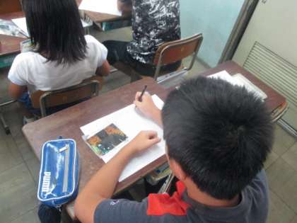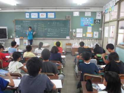 総合的な学習の時間では自分の思い出を英語を使って伝える学習をしています。外国語活動の時間に学んだ英語の力や,国語で身につけてきた伝える力を生かしていきます。まずは日本語で伝えたいことを整理して,写真や絵をどのように配置するかなどの構成を考えました。友達と質問しあいながら深めていました。