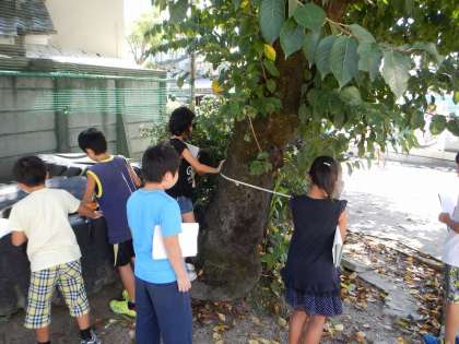 算数の学習で「時間と長さ」の学習をしています。今回は,巻尺を使った長さの測定の仕方を知り,いろいろなものを予想しながら測りました。また,巻尺を使って測った方が良いものがどういうものかを考えることもできました。