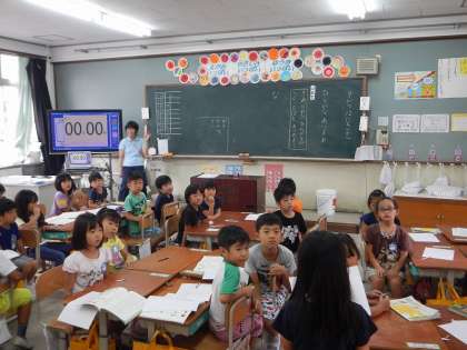 班で協力しながら,お題の文字から始まる言葉を一生懸命見つけていました。