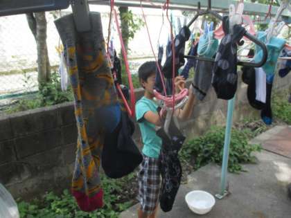 家庭科で手洗いに挑戦しました。この日はいてきた靴下を,もみ洗いやつまみ洗いなどを駆使してきれいにしました。洗濯したあとの水の色を見て,手洗いの効果を感じていました。