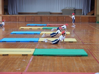 体育の学習でマットあそびをがんばっています。