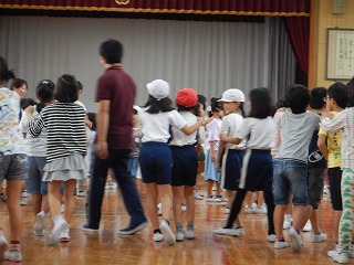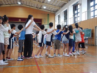 なかよし委員会を中心に体育館で『貨物列車』を楽しみました。みんなの楽しそうな笑顔がとても楽しそうでした。