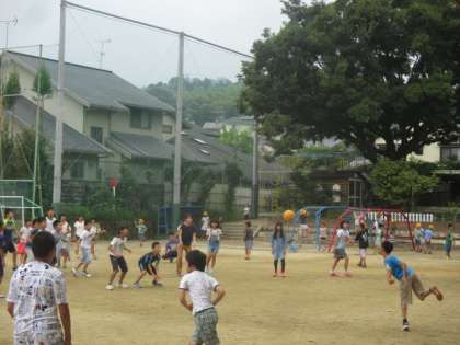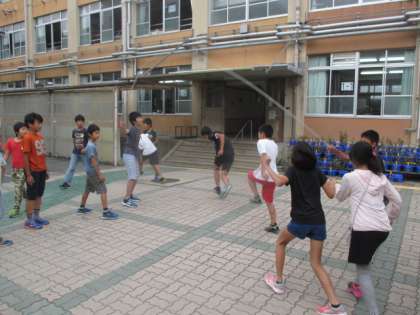 休み時間はみんなで元気に体を動かしています。大縄跳びや手打ちを男女関係なく誘い合ってみんなでやっています。運動して気持ちもすっきりしたことで,学習も集中して頑張っています。