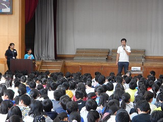 最後に,2週間後に控えた前期終業式,そして後期のスタートに向けて,名札やあいさつ,右側通行,掃除をしっかりしようという4点を確認しました。