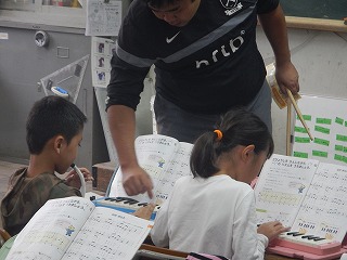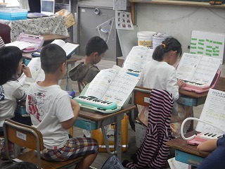 音楽の学習で,山のポルカを鍵盤ハーモニカで演奏しています。まだまだ練習が必要なところもありますが,一生懸命がんばっていました。
