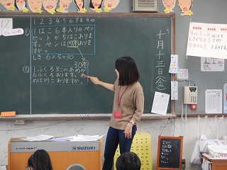 算数でかけ算の学習をしています。これから九九もしっかり覚えて,かけ算の計算をするときに,すぐに使えるようにしていきます。