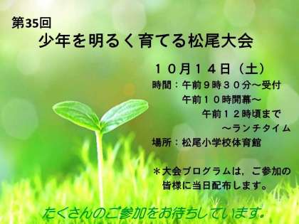 明日10月14日(土)は少年を明るく育てる松尾大会2017です。部活動ММCや和太鼓クラブも出演します。