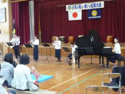 また、音楽サークルのノアノアさんが校長先生と一緒にアンサンブルの披露がありんました。