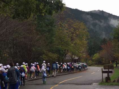 雨が上がり,全員山登りに出発しました。 今日のめあて「パワー」を意識して,力強くあきらめずに登り切ってほしいと思います。