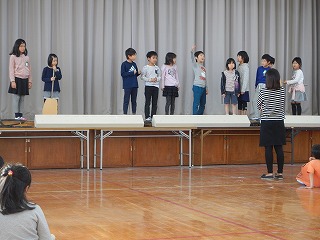 小道具を使った練習が始まりました。道具を持つだけで,自分の役がもっと身近になります。セリフに合わせた動きもどんどん良くなっています。