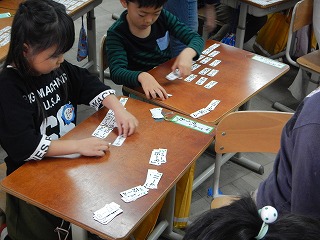 計算カードを見て,答えが同じになるように,カードを並べました。計算もとても早くなってきました。