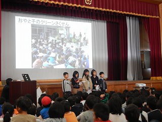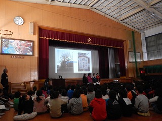 今回の松尾タイムは3年生の発表でした。総合的な学習で,これまで学習してきたことを,全校の子ども達に伝えました。松尾の歴史や地域について学び,大切にしていきたいと思ったこと,もっと松尾をきれいに,そして安全にしていくための取組やこれからもやっていきたいことなどを発表しました。