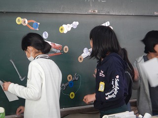 てこのしくみを利用した道具について考えました。道具によって,支点・力点・作用点の位置が違いました。身近にてこを利用した道具がたくさんあって,生活がとても便利になっていることが分かりました。
